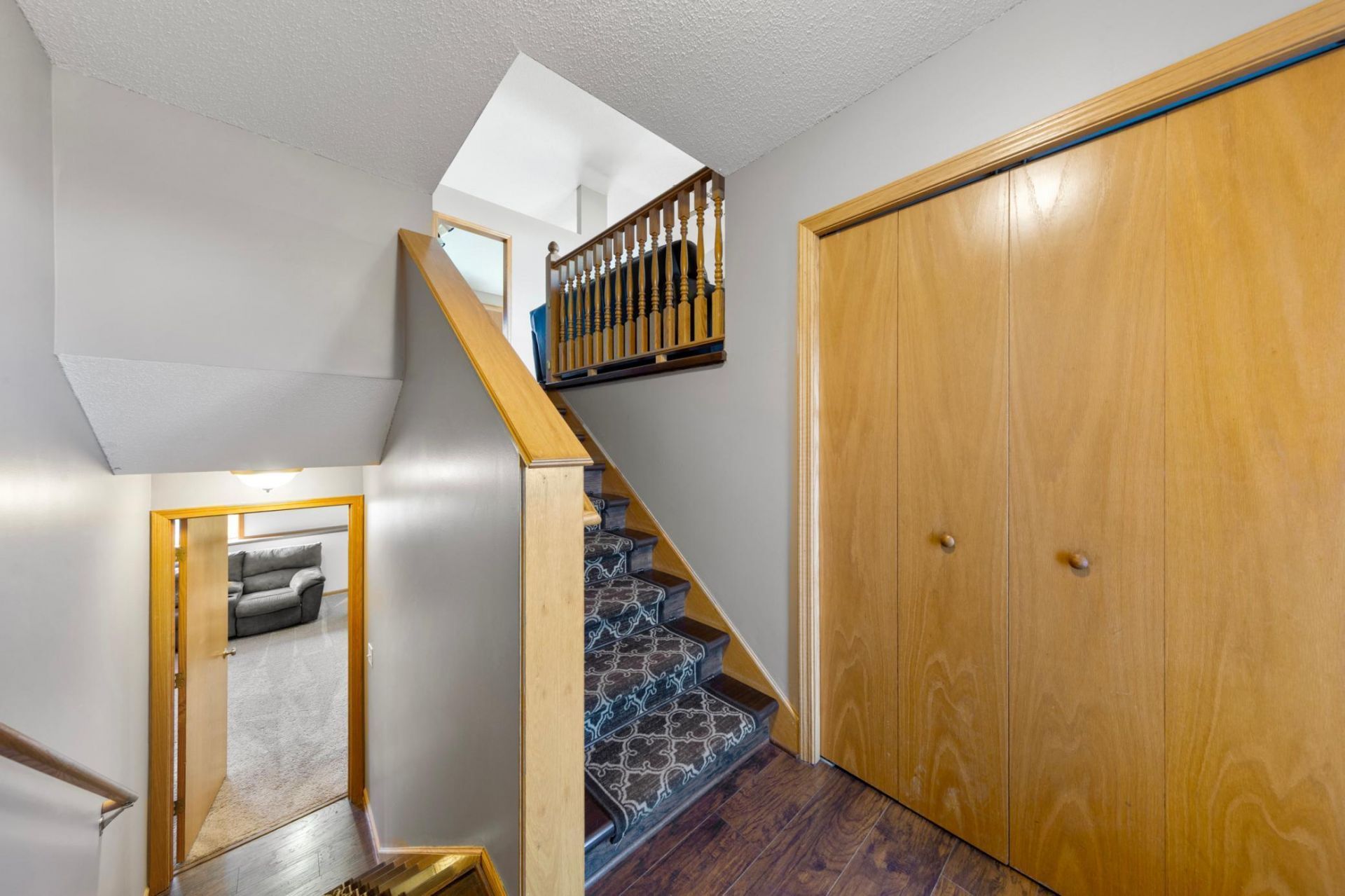 Welcome home to this meticulously maintained five-bedroom split level, were pride of ownership shines throughout, and in addition you'll get all the extra amenities. This large home boasts vinyl siding, with brick accents, a large yard with a gorgeous 15x 26 stone patio and firepit, and a fenced in yard. A brand-new front door welcomes you into this thoughtfully designed layout offering three spacious bedrooms on the upper level with new flooring, and a full bathroom. The kitchen, with custom oak woodwork, and cabinets, has a cozy feel in its own space, yet open to the large vaulted living room, offers an entertaining counter, great for a dry bar, breakfast bar or coffee bar. Off the kitchen, is a lovey 12x16 deck overlooking the stunning, private and functional back yard. The lower level, offers a large living room space, with fresh paint throughout, 2 additional bedrooms, full bathroom and laundry room, with newer washer and dryer. Additional highlights: 3 car garage. Near parks, trails, schools and close to HWY 169. Water heater, 2 years old, Dishwasher, 2 years old.